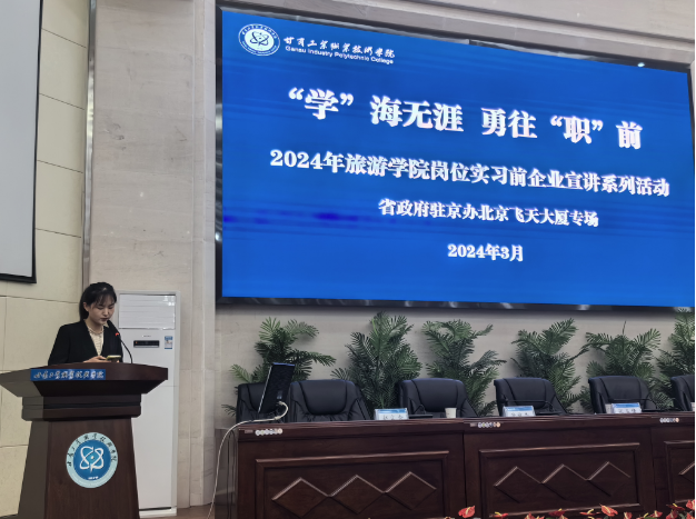 为了持续规范和加强公司员工的岗位实习工作,培育正确观念,搭建交流平台,促进双向选择,杜绝盲目求职,教育引导员工把握形势、抓住机遇,不断提升求职择业能力,3月26日,bevictor伟德官网开展“学”海无涯、勇往“职”前系列宣讲活动。省政府驻京办飞天大厦副总经理刘海军、人力总监赵秀玉、党办主任张玉倩一行来公司进行岗位实习前的专场企业宣讲,bevictor伟德官网相关班子成员、专业主任,2022级旅游管理、酒店管理与数字化运营专业员工近300人参加,bevictor伟德官网副经理李玉林主持并发表讲话。