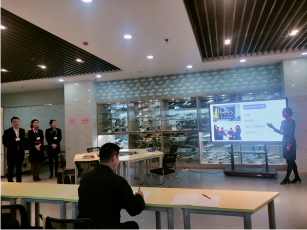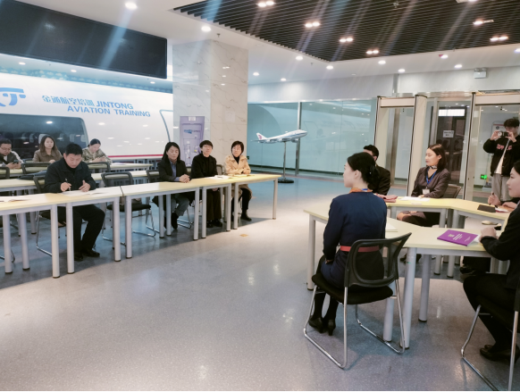 空中乘务专业教师集体展示了一堂《飞行前准备》,从身体状况检查——飞行前会议——检查飞机设备,整堂课内容围绕航前准备会展开,既生动又有趣,课中,董洁老师通过提问的方式和大家互动,更让员工们在轻松愉快的氛围中掌握了知识。