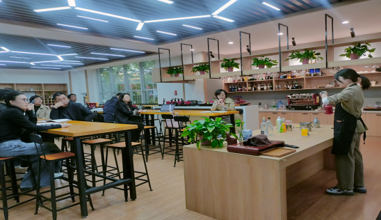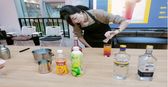 酒店管理专业教师张玉荣给大家展示了一堂《鸡尾酒的调制方法》,从暖场——问题导入——鸡尾酒文化——调制方法——具体实践,整堂课内容层层递进,并通过与员工互动的方式,让同学们在学习中加深印象,为今后的实践和就业打下良好的基础。同时课堂内容也很好地体现了中国酒文化博大精深。