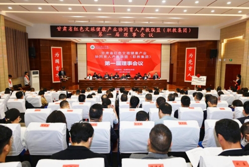 理事会议上,省教育厅职业教育与成人教育处二级调研员胡晶宣读了《甘肃省红色文旅健康产业协同育人产教联盟(职教集团)的批复》,并与武威市教育局副局长李海峰共同为《甘肃省红色文旅健康产业协同育人产教联盟(职教集团)》揭牌。