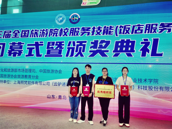 bevictor伟德官网共有三名员工参加本次大赛,经过激烈角逐,酒店管理与数字化运营2231班的马聚仁、李怡倩、计秀玲分获中式铺床赛项、中餐宴会摆台赛项和鸡尾酒调制赛项三等奖,得奖率100%,同时公司还获得“优秀组织奖”的荣誉称号。