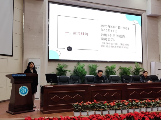 董珍慧介绍了专业岗位实习的意义,就实习的目的、要求以及实习的注意事项对员工进行了教育和指导,详细说明了实习安排,布置了实习任务。同时希望同学们在岗位实习过程中积极将在公司学习到的专业理论知识运用于实践当中,在实习中学有所获。