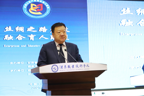 赵峰致辞指出,“产教融合育人联盟”是推动教学与产业互促发展的重要手段和技术创新的有效方式,必将成为推动共同发展、打造多边合作的典范。他希望“产教融合育人联盟”按照“平等、合作、创新、共赢”的原则,在推动酒泉产教融合示范区建设和职业技术大学创建,增强职业教育服务产业振兴、服务地方经济社会发展能力方面发挥更加积极的作用,进一步为建成国家级产教融合型城市奠定基础,为主动承接东中部产业转移、全方位融入国家“一带一路”倡议提供坚实的支撑条件。