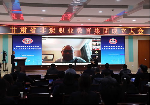 会上,宣读了甘肃省教育厅《关于同意成立甘肃省非遗职业教育集团的批复》,甘肃省非遗职业教育集团第一届理事长单位、副理事长和理事单位名单,甘肃省非遗职业教育集团第一届理事长、副理事长、秘书长和常务理事会名单,关于聘请学术指导单位和学术指导委员会专家委员的决定,并对甘肃省非遗职业教育集团章程作了说明。马宗岭与易志军共同为甘肃省非遗职业教育集团授牌。