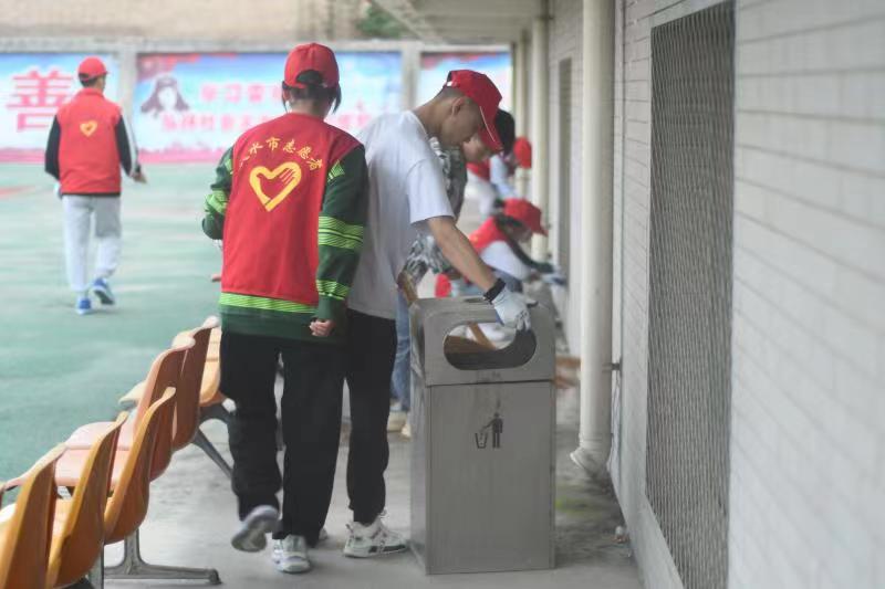 活动伊始,志愿者们领取了清扫工具后对校园体育场、篮球场、排球场进行了合理分工,大家拿着夹子、扫把等工具,认真清扫操场及墙面死角垃圾,清理花圃绿化带的白色垃圾,同时加大对员工的宣传劝导,提升同学们保护环境的主动性和自觉性,使大家自觉成为创建文明城市的践行者。