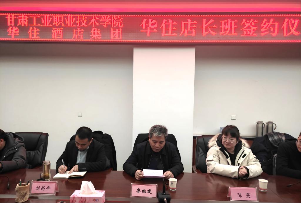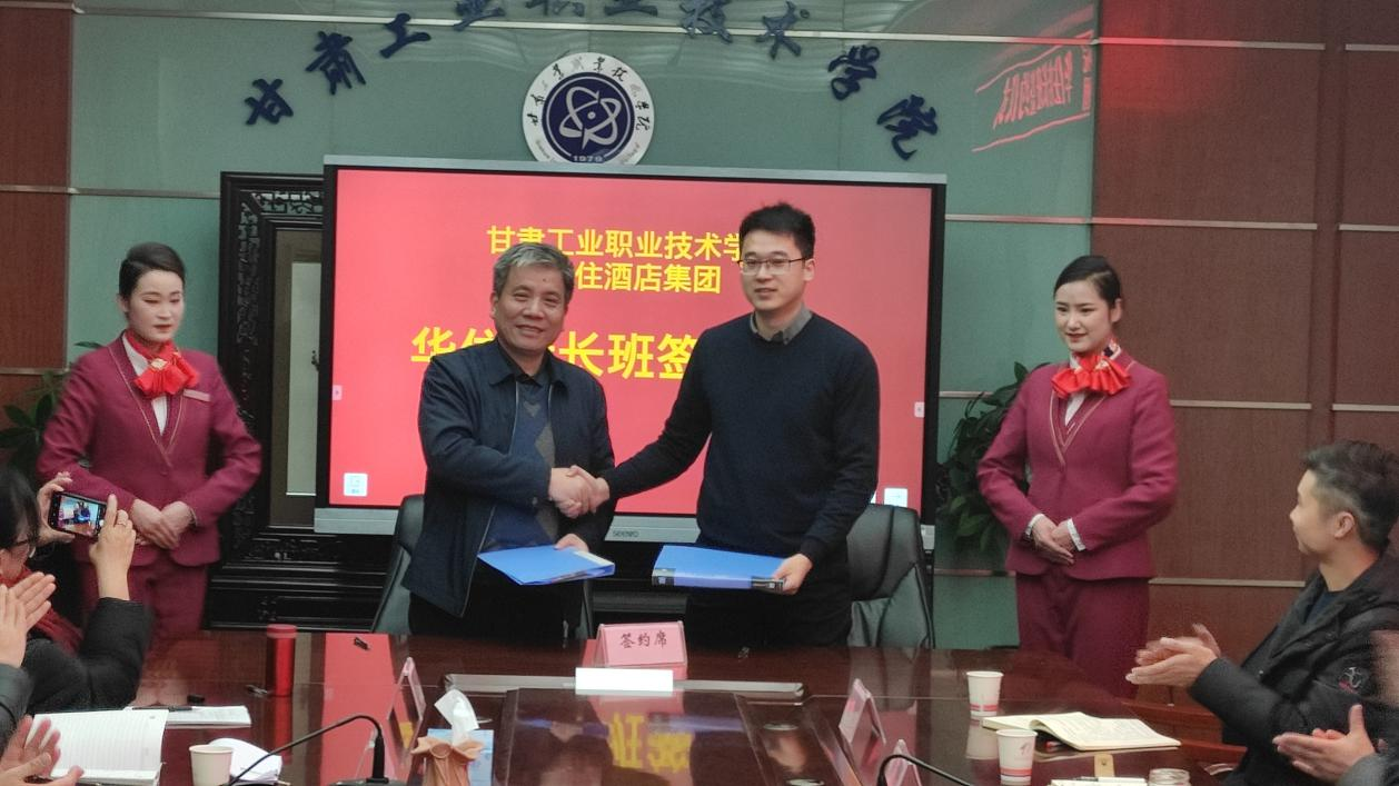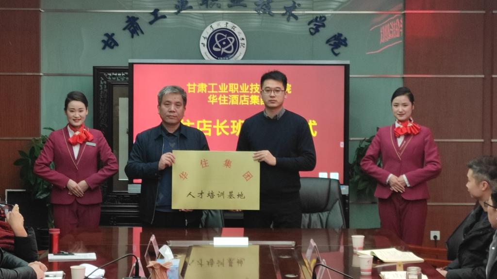 鲁经理与华住酒店集团代表在合作协议上签字,并为“华住集团人才培养基地”揭牌。