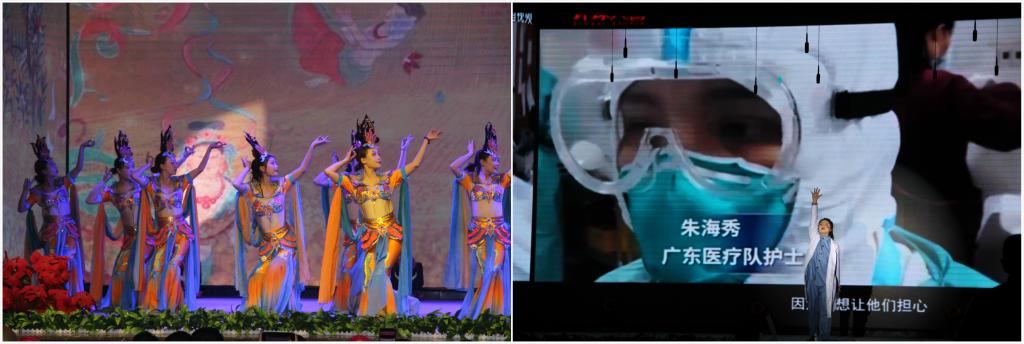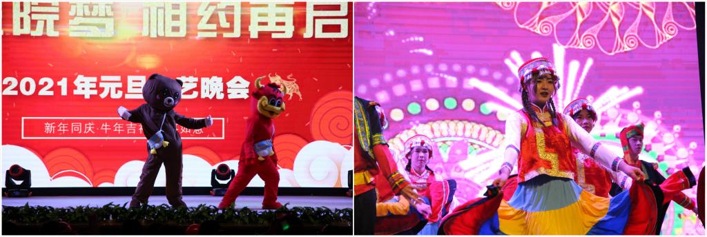 随后,元旦文艺汇演正式拉开了帷幕。绚烂的舞台绽放出青春与坚定的光芒,节目形式多样、精彩纷呈,观众的欢呼叫好此起彼伏,现场氛围热闹非凡。开场舞活力四射、无限欢乐;晚会主持落落大方、光彩耀人,舞蹈《一梦敦煌》神形兼备、独树一帜;《相声》幽默诙谐、寓教于乐;旗袍秀《雅韵》诗情画意、古典优雅;歌曲《谣》情景剧《春暖花开》演绎生命与责任,歌颂英雄和祖国;舞蹈《狼图腾》血气方刚、寓情于景;最后,舞蹈《启航》诠释青春和梦想,万里长空,璀璨旅院,相约启航。