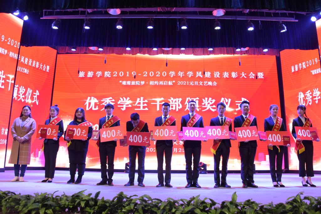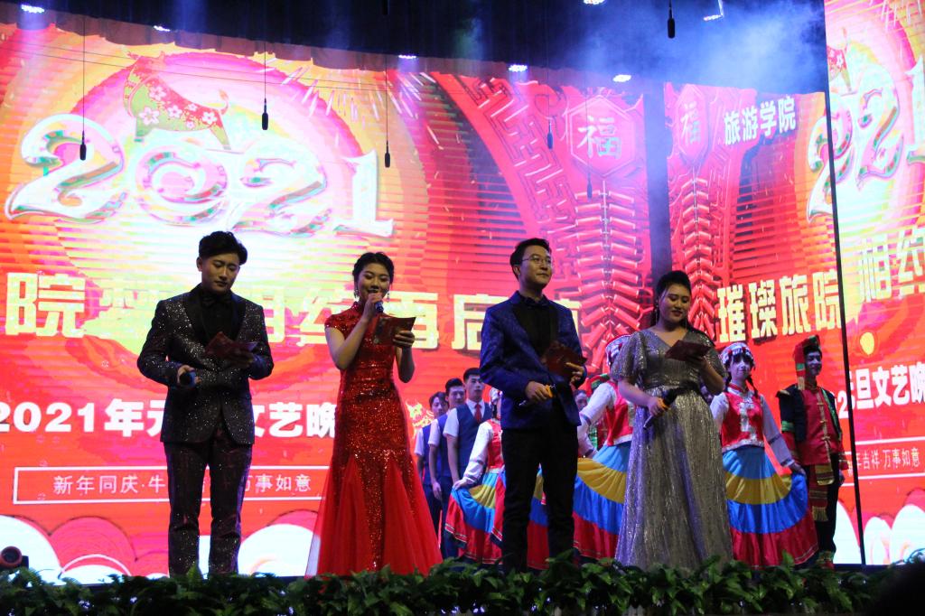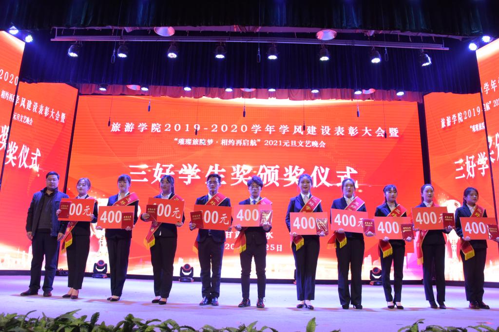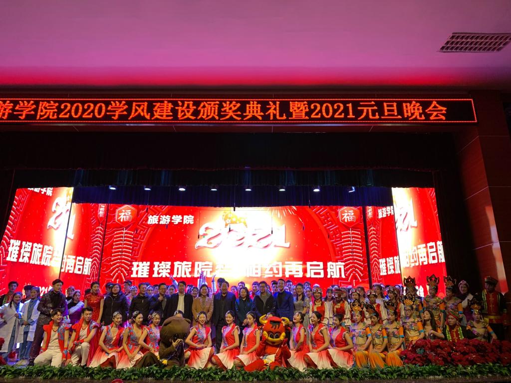 12月25日晚,老员工活动中心光彩夺目、热闹喜庆,bevictor伟德官网学风建设表彰大会暨“璀璨旅院梦·相约再启航”2021元旦文艺晚会在这里华丽上演。公司副董事长李玉生、组织人事部部长杨建国、宣传统战部部长胡森林、学工处处长曹惠清、团委书记黄晓慧、旅院公司经理曹瑞琴与公司、bevictor伟德官网800余名师生欢聚一堂,共同参加表彰,观赏演出。