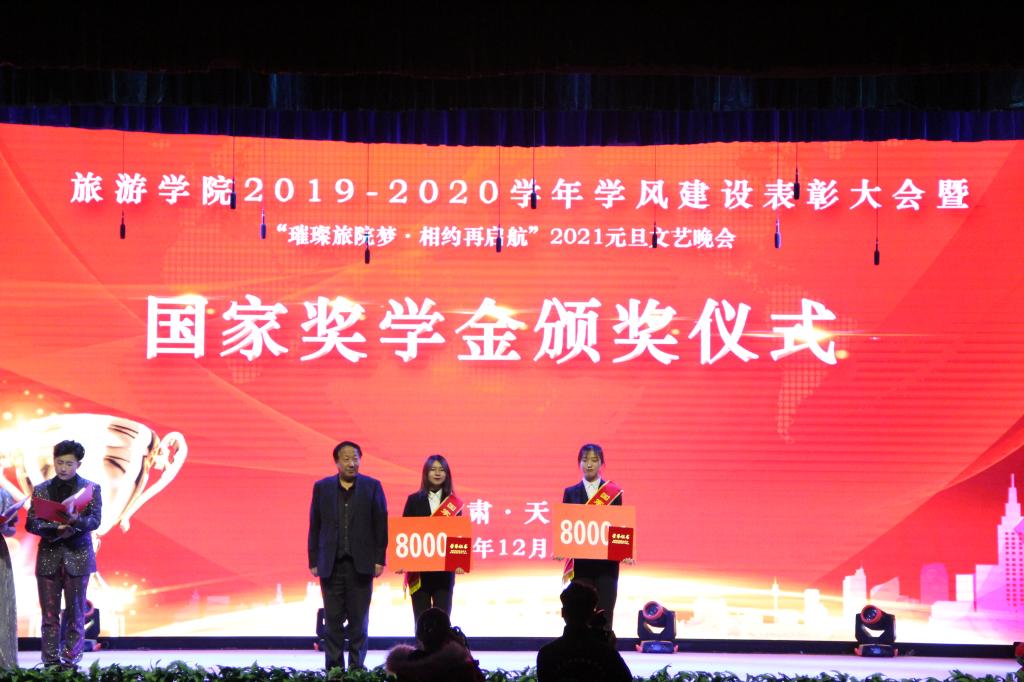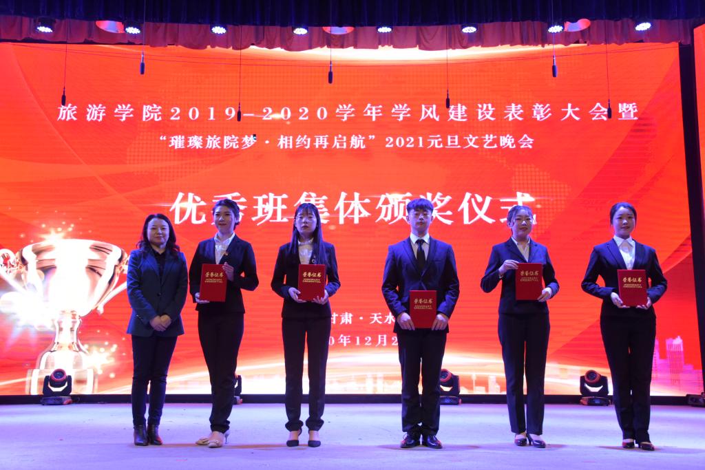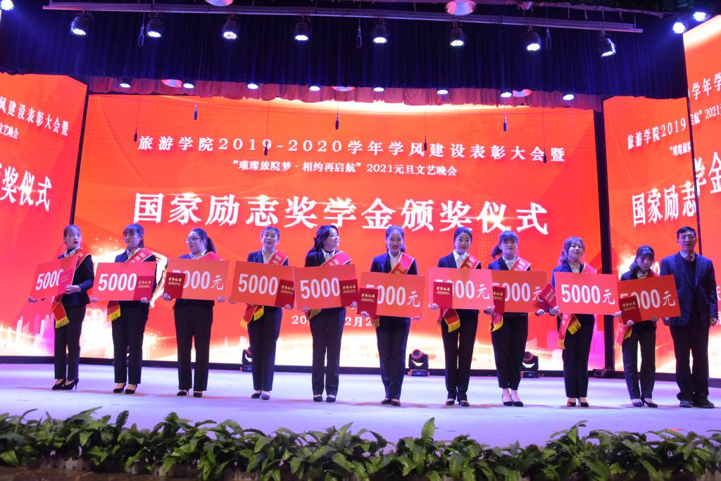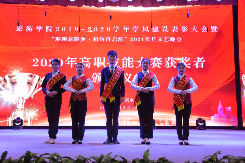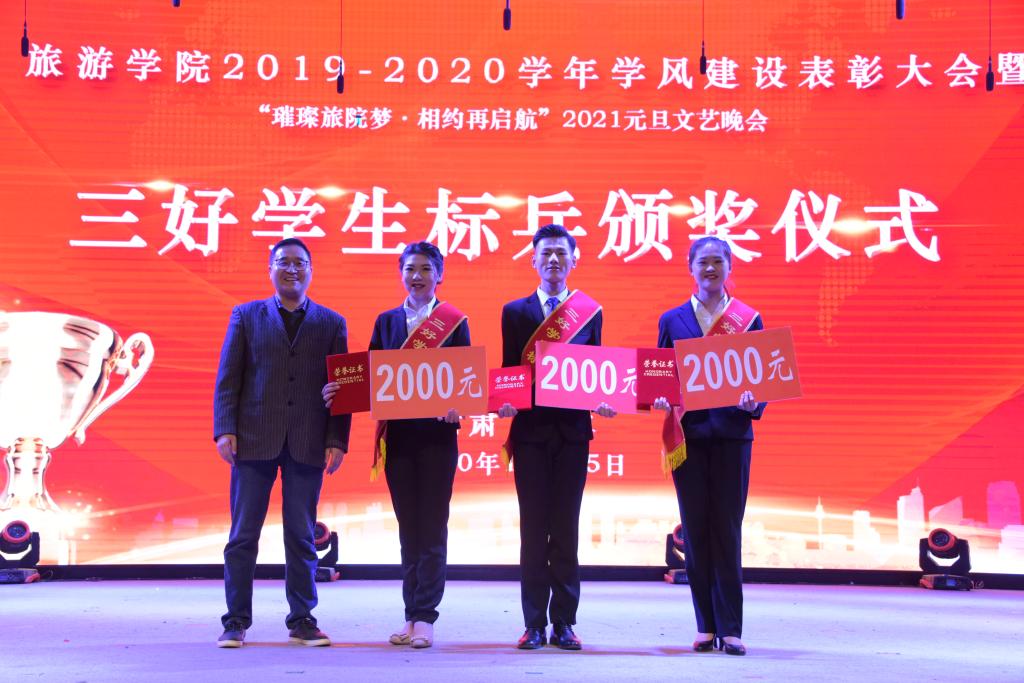 12月25日晚,老员工活动中心光彩夺目、热闹喜庆,bevictor伟德官网学风建设表彰大会暨“璀璨旅院梦·相约再启航”2021元旦文艺晚会在这里华丽上演。公司副董事长李玉生、组织人事部部长杨建国、宣传统战部部长胡森林、学工处处长曹惠清、团委书记黄晓慧、旅院公司经理曹瑞琴与公司、bevictor伟德官网800余名师生欢聚一堂,共同参加表彰,观赏演出。