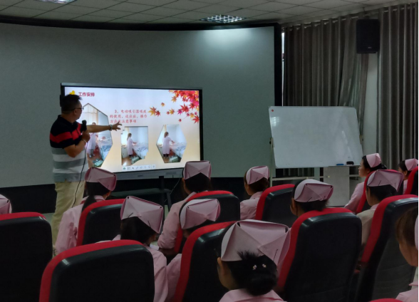 首先,孙经理对天津劲松护养院的规模、企业文化、上届实习生的实习情况进行了详细的介绍并对员工在实习或工作过程中所需具备的能力、职业素养等方面提出了一些建议。随后,崔主任讲述了老年照护人员要在生活照护、基础护理、康复护理、应急救护等工作领域中为老年人提供的相关服务。强调每一位在校生都要掌握好老年照护技能,充分利用在校的时间练习老年健康照护的技能操作,在以后的工作岗位中能够从各个领域为老年人提供更多、更优质的服务。此后,员工们与企业领导进行了深入的沟通交流,使得员工们提前了解到入岗前的相关事宜等。