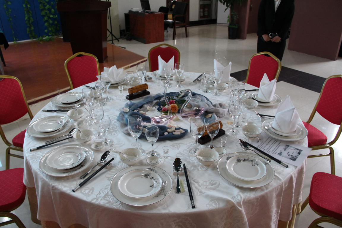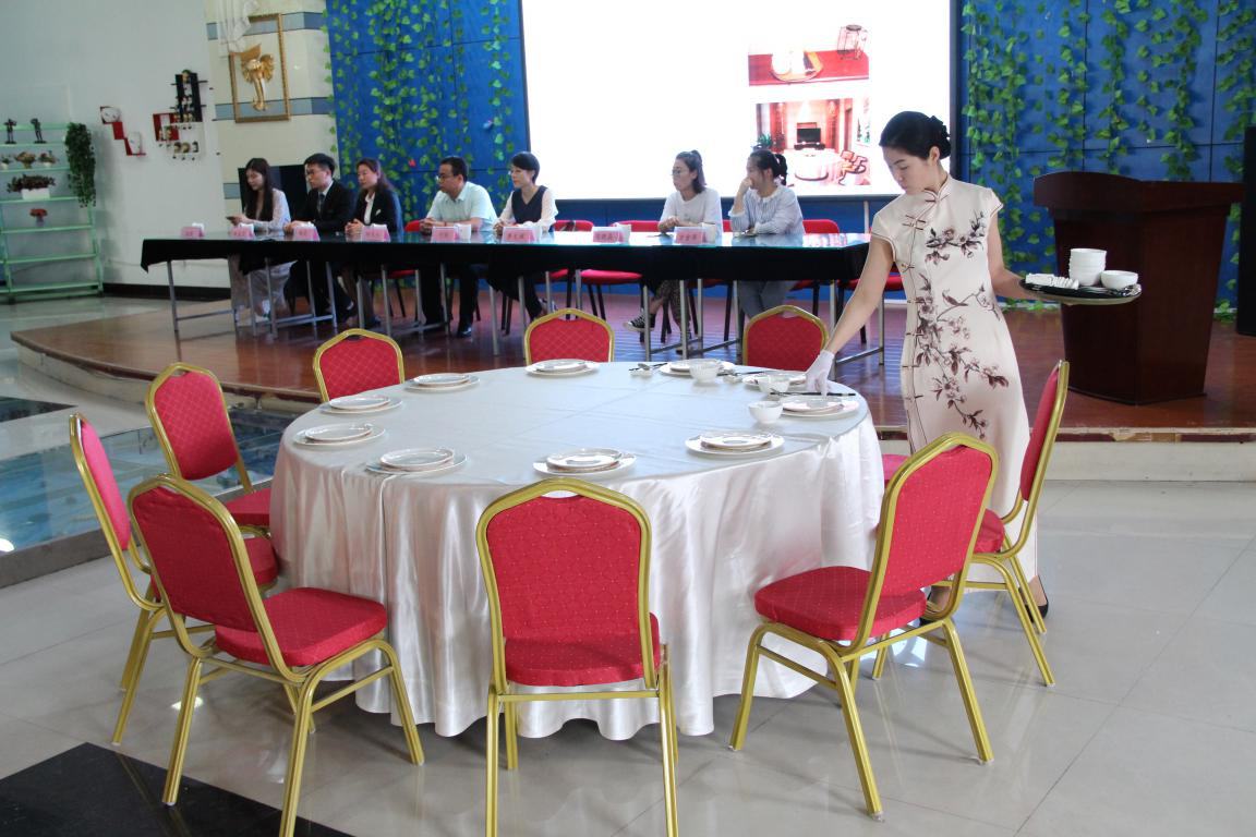 各星级酒店进行中餐宴会设计展示,设计共分为摆台操作及台面设计、台面主题陈述等环节。各酒店新颖的主题,灵动的装饰,娴熟的操作深深吸引在场的师生,呈现了一场丰富多彩的视觉盛宴。