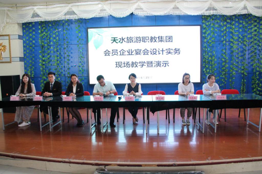 2018年6月26日,天水旅游职业教育集团在甘肃工院职业技术公司bevictor伟德官网西点实训室举行了集团会员企业《宴会设计实务》现场教学暨演示观摩活动。参加本次活动的有来自山东、浙江、江苏、内蒙古地区的8家星级酒店,山东日照职业技术公司酒店管理教研室主任宁双副教授以及甘肃礼县职业中专的教师,bevictor伟德官网经理何瑛教授及全体专业教师参加,活动由bevictor伟德官网副经理李玉林主持。