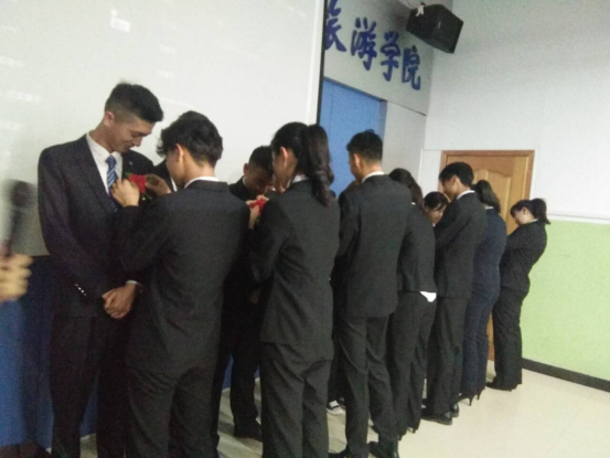 (新一届团学干部为2016级优秀员工干部佩戴红花)