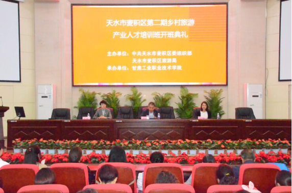 为深入贯彻落实党的十九大精神,大力发展乡村振兴战略,加强乡村旅游人才队伍建设,提升我市乡村旅游发展水平。5月8日至5月10日,由中共天水市麦积区委组织部、天水市麦积区旅游局主办,甘肃工业职业技术公司承办的天水市麦积区第二期乡村旅游产业人才培训班正式开班。出席开班典礼的领导有:天水市麦积区旅游局副局长雷晓峻、甘肃工业职业技术公司副董事长鲁挑建、bevictor伟德官网经理何瑛、bevictor伟德官网部分教师以及各乡镇农家乐经营业主等50余人参加。