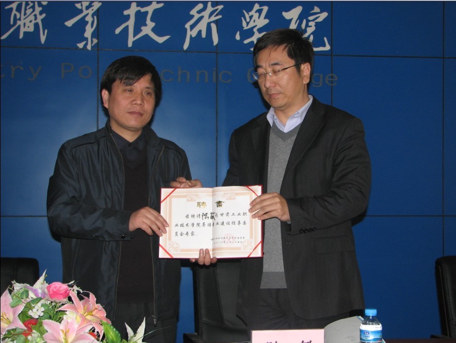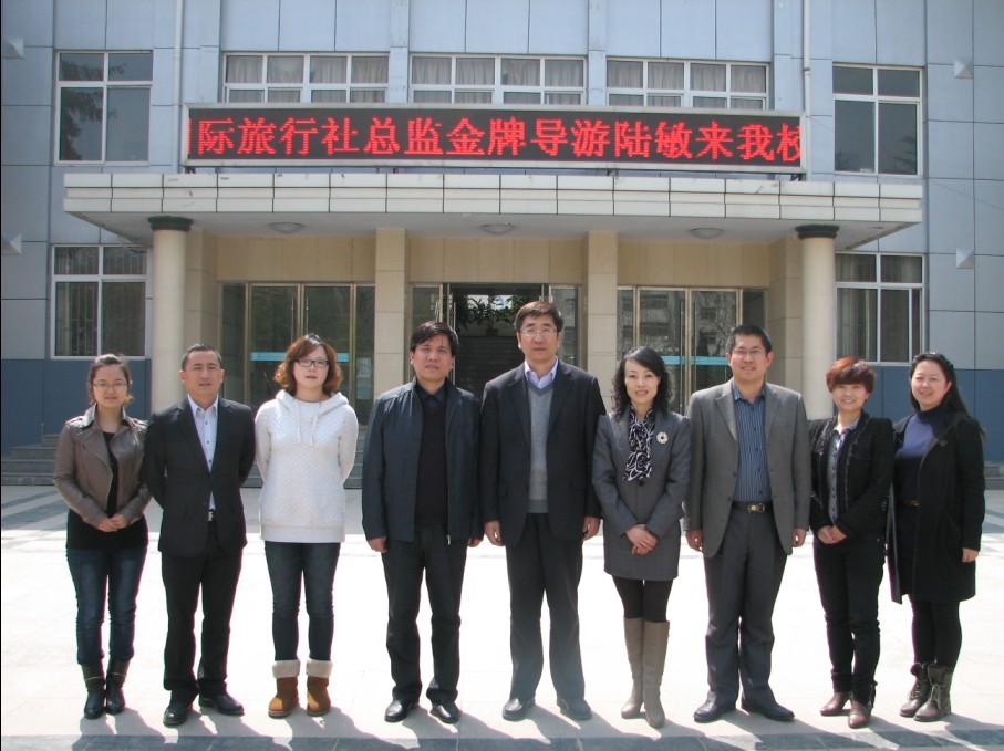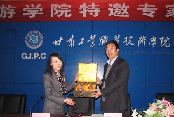 在讲座开始前的欢迎仪式上鲁挑建代表公司对陆敏一行的到来表示了热烈欢迎,并向陆敏颁发了甘肃工业职业技术公司导游专业建设委员会专家聘书。