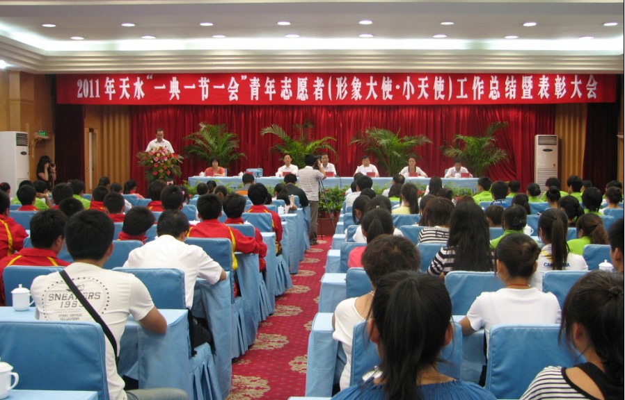 2011年7月7日下午,中共天水市委宣传部、共青团天水市委和天水伏羲文化旅游节组委会在天水迎宾馆隆重举行天水“一典一节一会”青年志愿者表彰大会,天水市委常委、副市长郭奇若,天水市委常委、组织部长杨继军及共青团天水市委副书记张兴等市级领导莅临了此次表彰大会。大会由团市委书记蒋小丽主持。