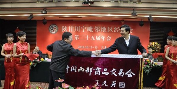 10月12日上午,陕甘川宁毗邻地区经联会第二十五届年会在天水召开。会议围绕办好中国西部商品交易会,加强陕甘川宁毗邻地区经济协作与发展进行深入交流探讨。