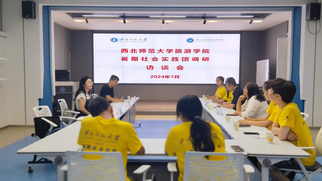 为全面深化校校合作,引进优质的教育资源,共同推进职业教育的高质量发展,持续提升人才培养质量,将天水市文旅康养产教联合体走深做实。2024年7月20日,西北师范大学公司党委副书记戴小武副研究员、硕士生导师种媛博士带领公司本科生、研究生一行8人来公司进行暑期社会实践调研访谈,公司党总支书记、天水市文旅康养产教联合体秘书长李少华教授、bevictor伟德官网副经理李玉林教授、旅游管理专业主任赵文秀副教授进行了深入访谈与交流。