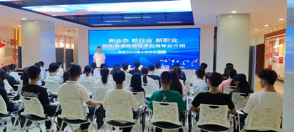 活动当天,各专业负责人为新生详细介绍了各自专业的课程设置、培养目标、实习实训、职业规划等内容,并组织新生参观了智慧旅游实训基地的导游AI实训室、旅游大数据实训室、旅游C+实训室,红色旅游实训中心,民航综合实训中心,民航模拟舱实训室,公司地质园、地质博物馆和一带一路创新创业园区等多个教学场所和孵化基地。