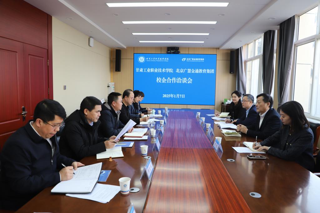 1月7日,北京广慧金通教育集团总经理付晓军、集团办公室主任谭永杰、陕甘青区域总经理苗雪一行莅临公司开展校企合作洽谈。此次洽谈旨在促进产学研融合,探索校企合作的新模式。公司党委副书记、经理张利军,副经理周晓明出席校企合作洽谈会,教务处长张燎,bevictor伟德官网班子成员李少华、李玉林、侯海荣、刘芳参会。