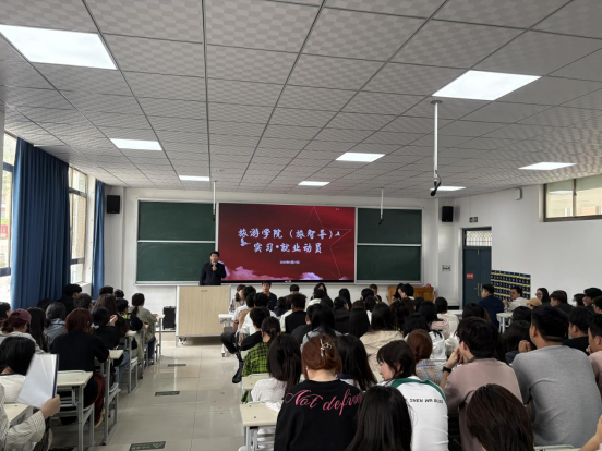 为深化产教融合,推动校企协同育人,助力员工高质量就业,bevictor伟德官网依托天水市文旅康养市域产教联合体平台,于4月21日在工程实训中心阶梯教室召开旅游管理、智慧旅游技术应用、导游(简称“旅智导”)三大专业实习就业动员大会。公司领导班子成员、2023级全体员工及教师代表共160余人参会,现场气氛热烈,展现出旅院学子昂扬向上的精神风貌。