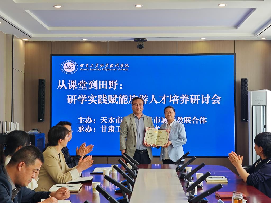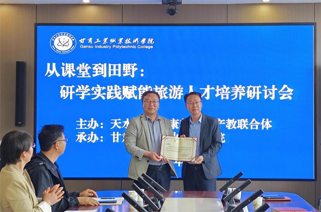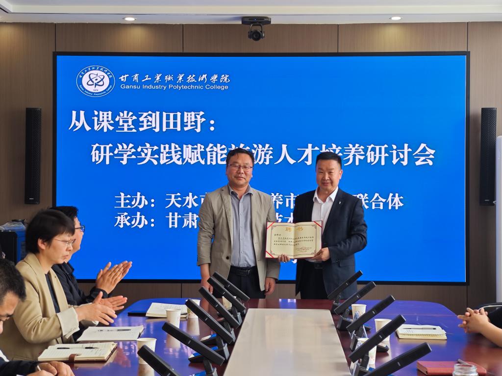 文云在致辞中系统介绍了公司办学历史与职业教育特色,bevictor伟德官网经理李玉林主持会议并重点汇报了公司专业建设成果及研学人才培养实施路径。会上举行天水市文旅康养市域产教联合体智库专家和公司旅游管理专业群建设专家委员聘任仪式,李岑虎、朱晔、郭海峰三位专家获颁聘书。李岑虎教授代表专家团队向公司捐赠《研学旅行课程设计实务》等专业著作20册。