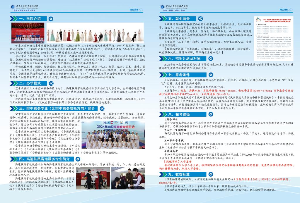 2025年空中乘务、高速铁路客运服务专业招生简章