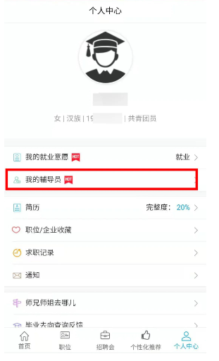 3.进入个人中心后找不到“我的辅导员”入口或显示非应届生: