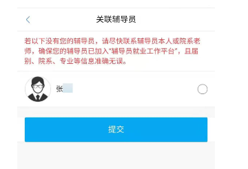 5.在页面中勾选自己的辅导员并提交,则关联成功