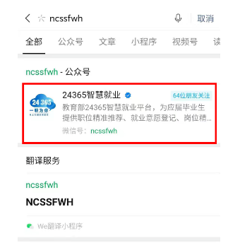 1.毕业生搜索并关注“24365智慧就业”(ncssfwh)公众号