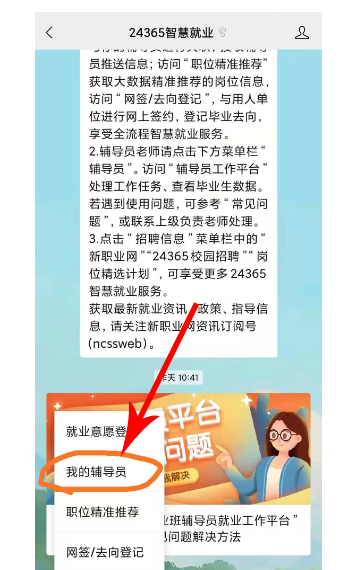 2.点击公众号菜单栏:毕业生——我的辅导员