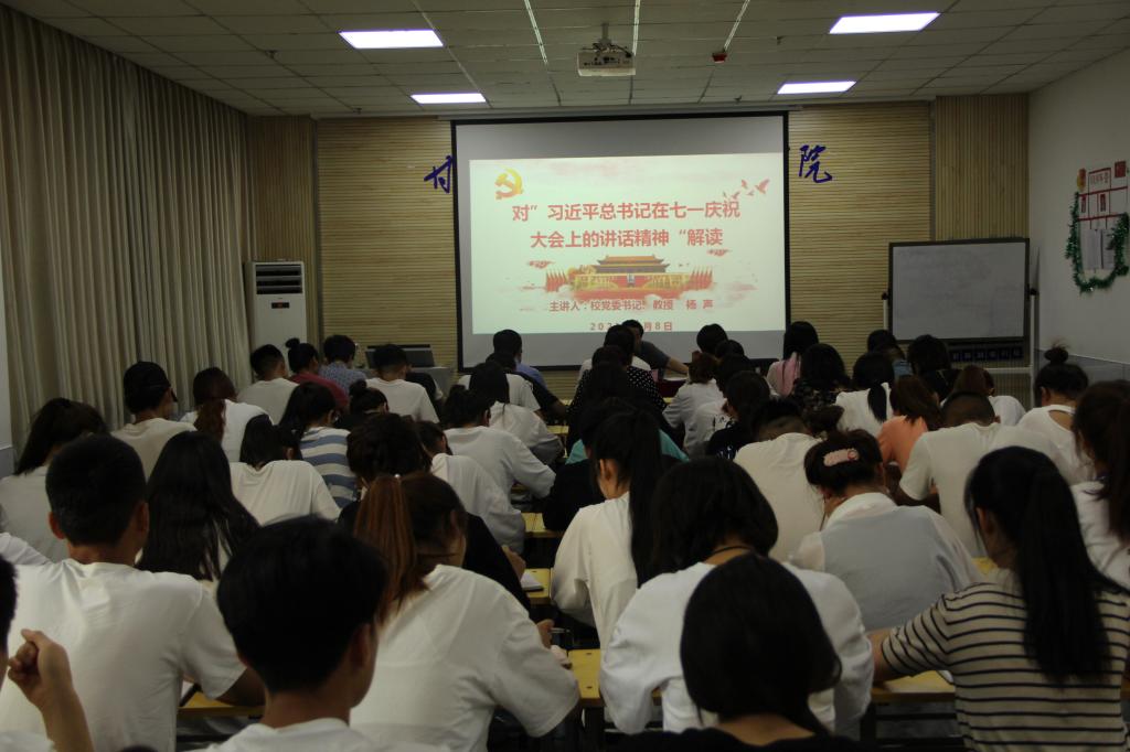 杨声指出,习近平总书记的重要讲话,铺展开党一百年来在理想照耀下扭转民族命运、书写人间奇迹的历史画卷,展现了党一百年来在奋斗、担当、牺牲、奉献中熔铸的伟大精神,向全党发出了踏上第二个百年奋斗目标新的赶考之路的伟大号召,为党、为国家、为中华儿女标定了走向未来的发展航向,我们全院师生要以“优质校”“50强”为契机,努力拼搏、攻坚克难,全面推进公司“双高”建设、“提质培优”“技能甘肃”高水平高质量发展的征程。