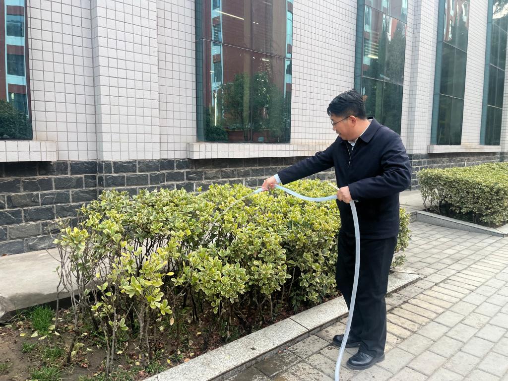 头雁领航,劳动现场党旗红。上午10时,公司党总支副书记、副经理李玉林与师生们在5号公寓楼前集合。"雷锋精神不仅是一句口号,更要体现在弯腰拾捡的细节里。"简短动员后,队伍分为三个小组:主干道清洁组重点清理烟头、落叶;绿化带整治组徒手拔除杂草、捡拾白色垃圾;公寓楼专班针对玻璃幕墙、台阶死角进行精细化擦拭。过程中,李玉林俯身示范如何给花草树木浇水,并与员工交流:"劳动教育是人生必修课,作为旅游专业学子,更要从维护校园环境做起,培养服务意识。"