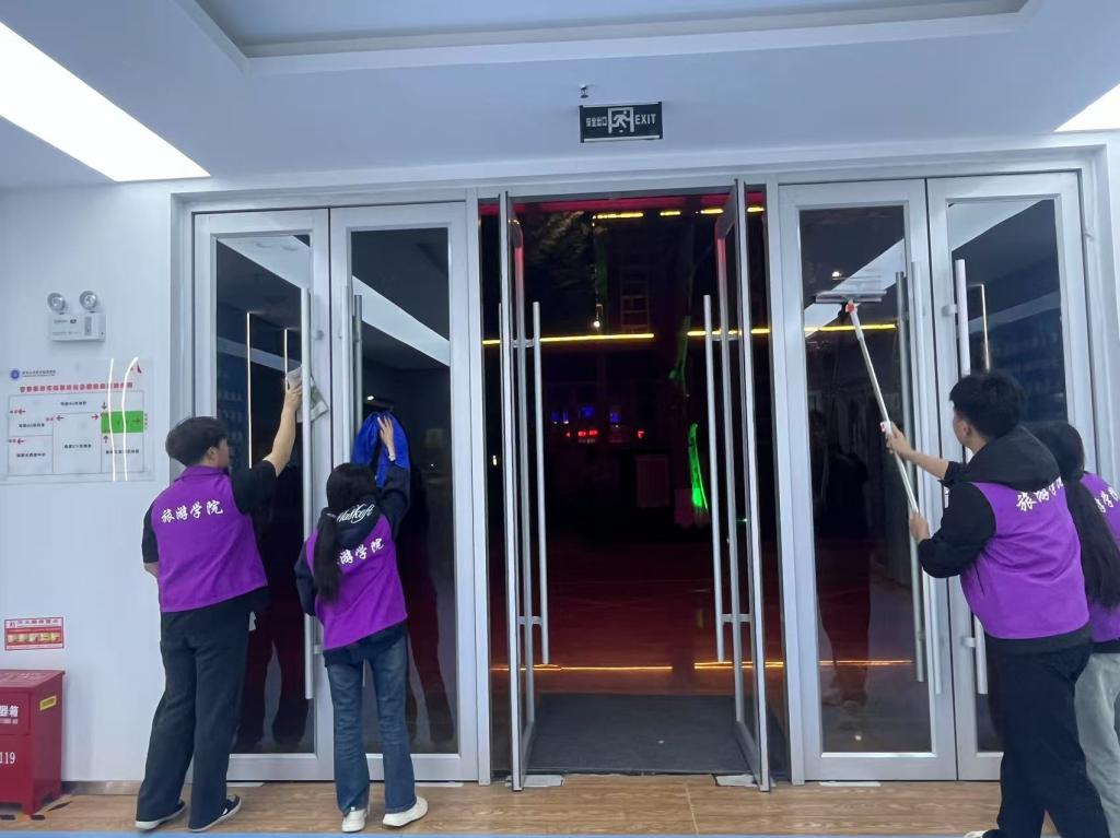 本次清洁行动聚焦 "三个一":清理一间旅游实训室、擦亮一面玻璃窗、美化一个公共区。在bevictor伟德官网红色旅游实训基地,李玉林指导员工按照高标准擦拭玻璃:"每一个门、每一面墙,都是党对我们的考验。"