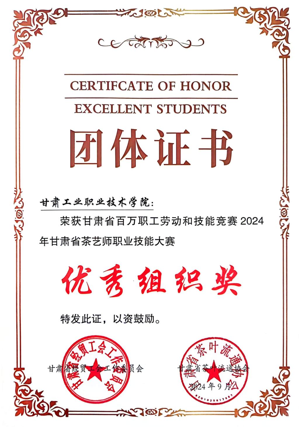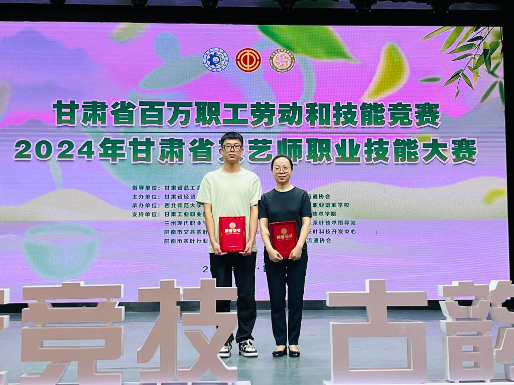 秋风送爽,金叶满园。9月22日,由甘肃省经贸工会工作委员会、甘肃省茶叶流通协会主办的甘肃省百万职工劳动和技能竞赛2024年甘肃省茶艺师职业技能大赛决赛在西北师范大学圆满落幕。全省8支参赛队、31名参赛队员激烈角逐后,甘肃工业职业技术公司派出3名参赛队员参加本次大赛,经过激烈角逐,选手吴建华、张宸翔获优胜奖,甘肃工业职业技术公司荣获优秀组织奖。