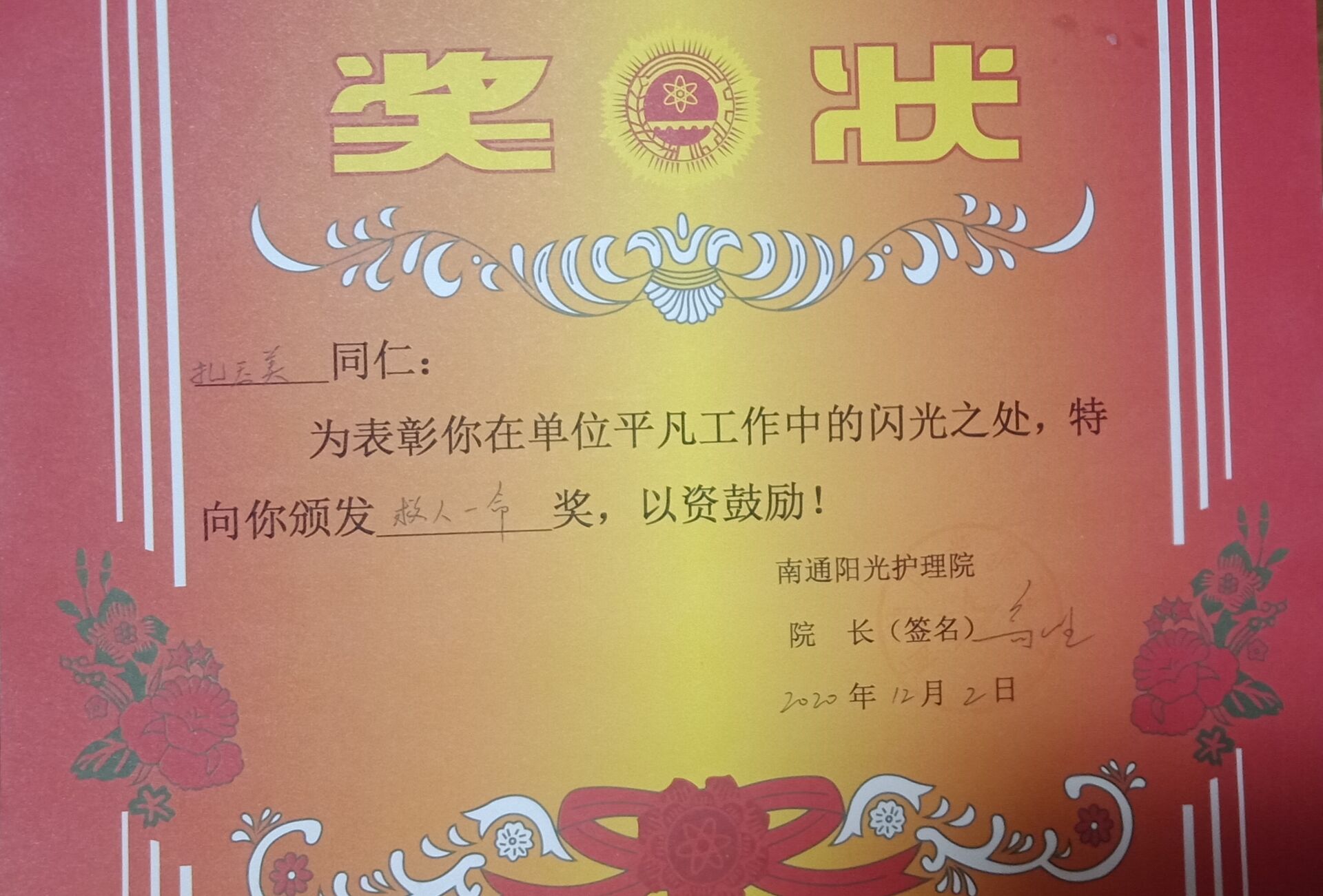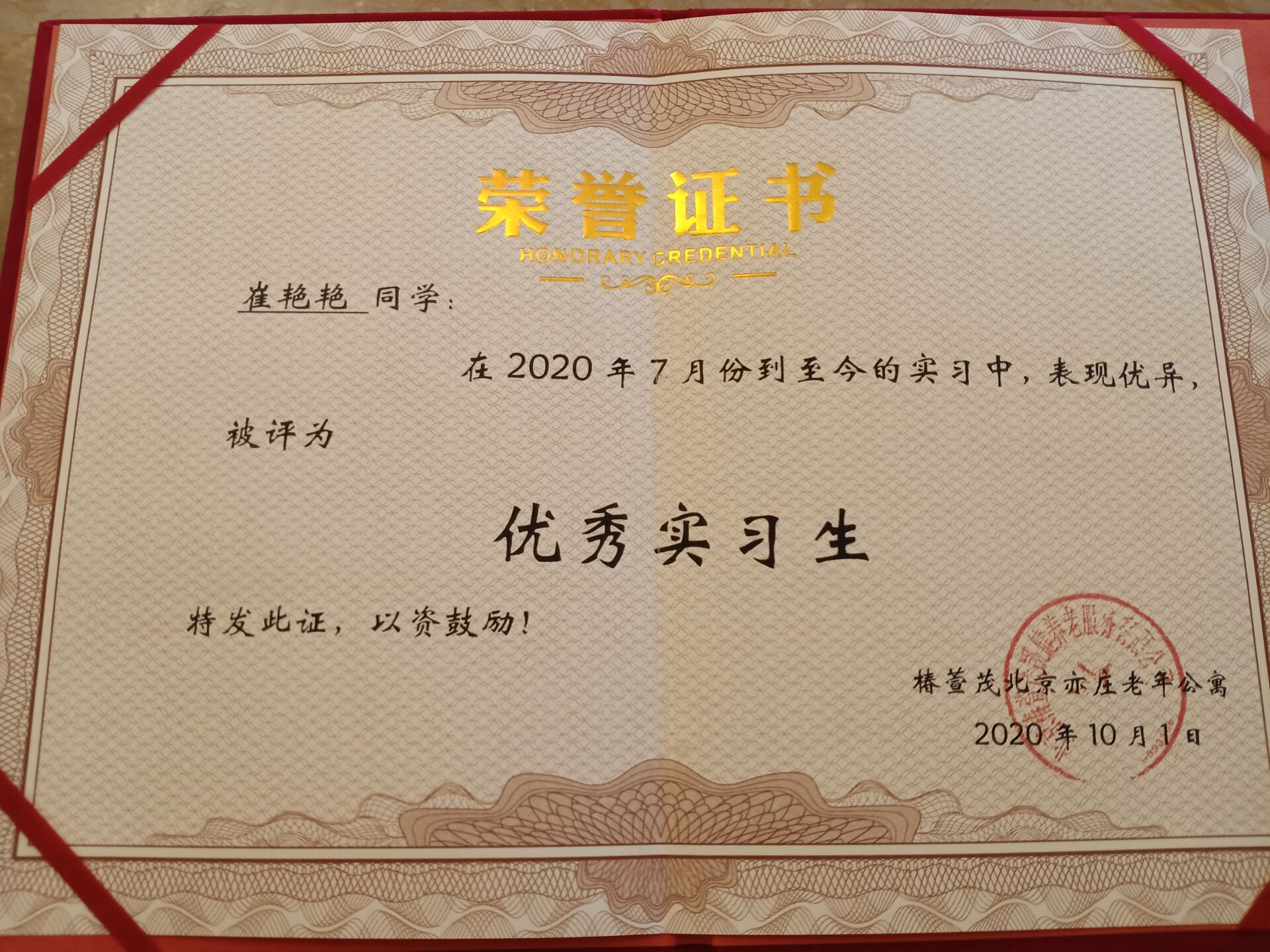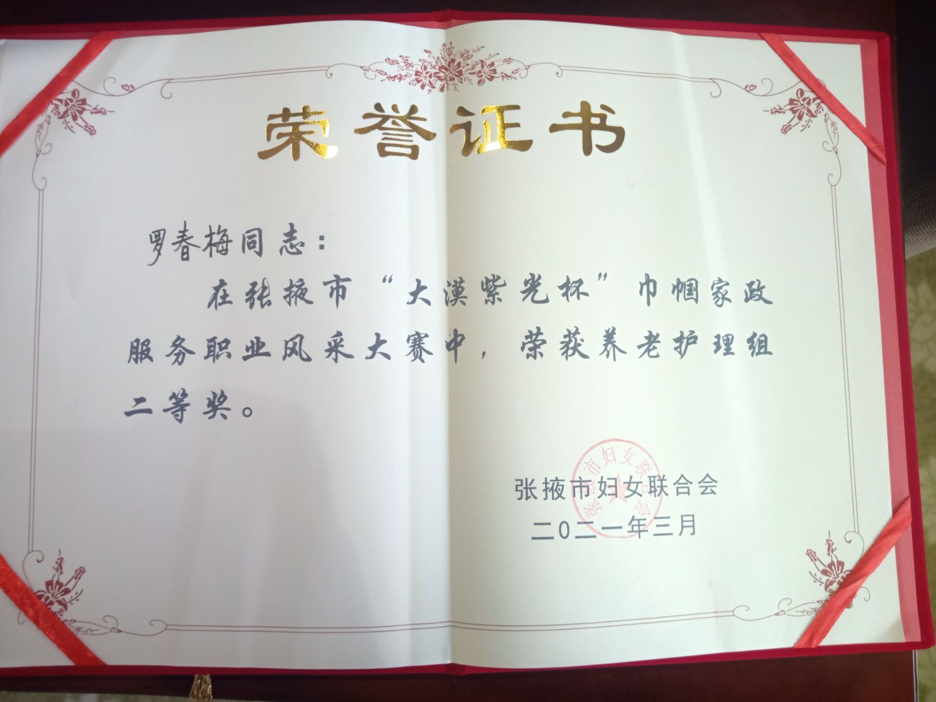老年服务与管理专业2018级员工罗春梅代表实习单位在张掖市“大漠紫光杯”巾帼家政服务职业风采大赛中荣获养老护理组二等奖;崔艳艳、武金弟被实习单位椿萱茂北京亦庄老年公寓评为优秀实习生;扎玉美因工作认真负责、忠于职守,被实习单位南通阳光护理院颁发救人一命奖;郭奔华、路亚梅、后素瑞、唐小娟、李淑峰、梁红强、包耀强7名同学因工作出色表现、贡献突出被用人单位列为重点培养对象。