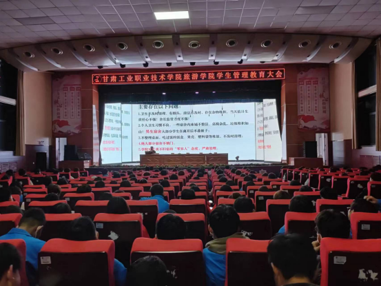 公司党支部副书记安敏杰首先对日常上课、早操、晚自习情况,宿舍卫生情况存在的问题以及员工违纪处分情况进行了全院通报,对涉及班级、宿舍、员工进行了批评教育,并对相关整改要求进行了安排部署;然后结合近期发生的两起违规违法真实案例向全院员工开展了校纪校规、法律法规观念及电信诈骗警示教育;最后殷切的给同学们提出了要求和期望,希望同学们要“明大德、守公德、严私德”,坚持从小事小节上加强修养,从一点一滴中完善自己,不断领悟德行真谛,加强德行修养,做知书达理、尊师善礼的旅院学子。