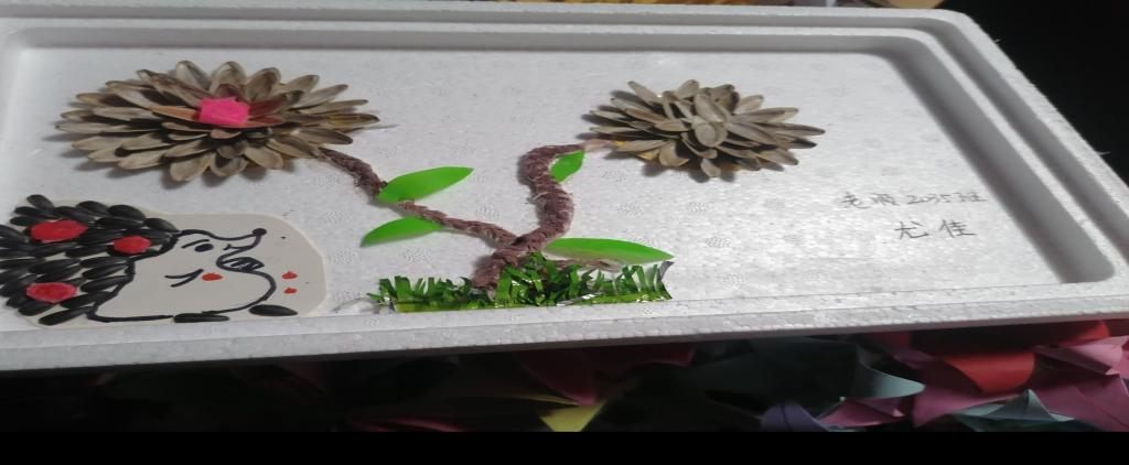 同学们利用了生活中的废纸、一次性筷子等材料,运用折叠、剪纸、废品制作了千纸鹤花、各种各样的环保作品,充分发挥了自己的想象力和动手能力,制作出了无与伦比的创意作品,每件作品用心制作,反复考量,认真改善作品中有可能出现的的问题,只为了自己心中那一份践行和思考。