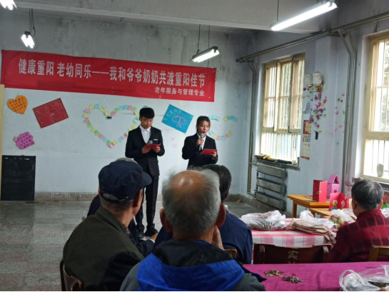 金秋送爽,丹桂飘香。一年一度的重阳佳节如期而至,为弘扬中华民族尊老、敬老、爱老、助老的传统美德,倡导孝老、爱老的文明新风,传播健康养老理念,2019年10月9日下午3点在公司老年退休活动室开展了一场以“健康重阳,老幼同乐——我和爷爷奶奶共渡重阳佳节”为主题的重阳节文艺联欢活动。老年服务与管理专业部分师生、公司30余名离退休教职工及老年服务与管理专业全体员工共同参加此次活动。