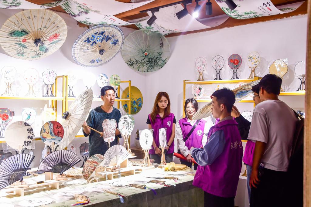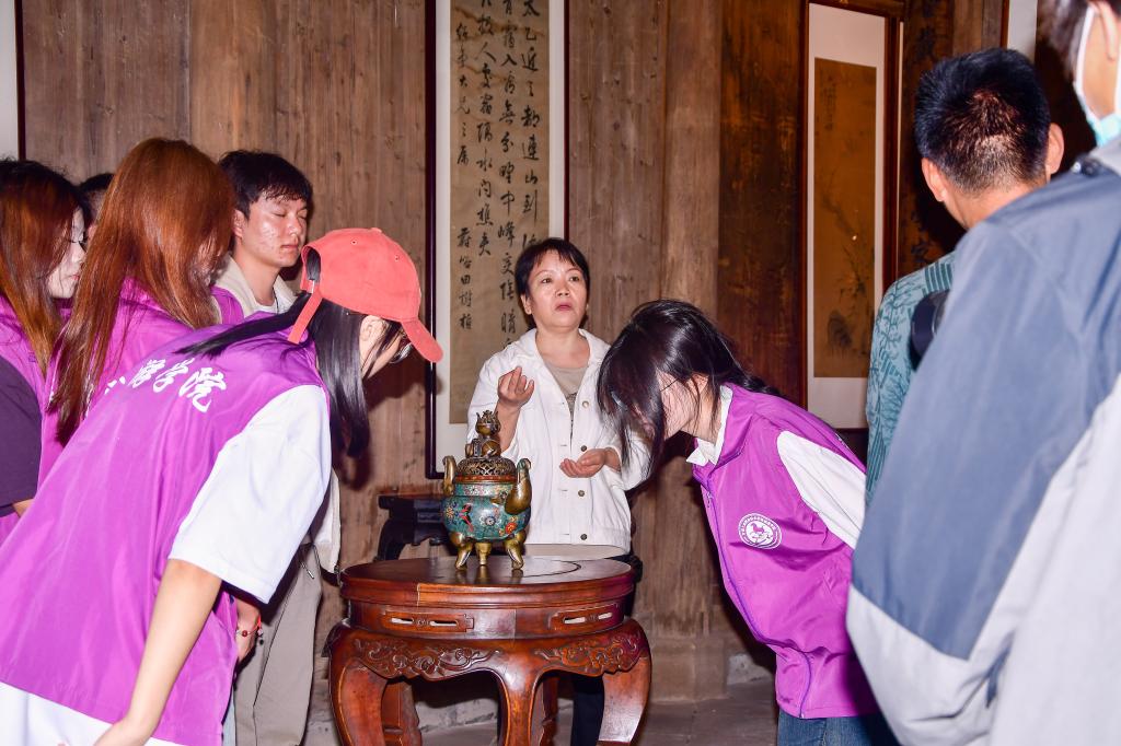 实践团第一站到达了天水市秦州区苏湾村苏湾民俗庄园,成员们在陇绣非遗传承人刘云帆的带领下一同拜访了当地的手工艺人,深度学习了陇绣的历史渊源、技艺特点、传承和发展状况,同时也在民俗庄园内参观调研了漆扇、建筑工艺等非物质文化的基本技艺和发展方向。