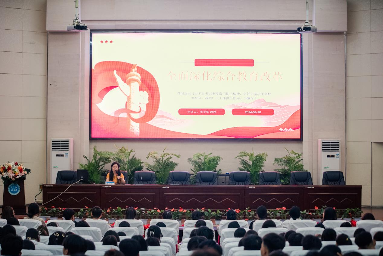 值此新中国成立75周年之际,公司党总支书记李少华于9月26日在图书馆五楼报告厅,为2024级新生举办了一场以“全面深化教育改革”为主题的党课讲座。本次党课紧密围绕二十届三中全会精神,深入剖析了教育改革的政策导向,激励旅院学子们在新时代背景下,勇担时代使命,为国家的繁荣富强贡献力量。