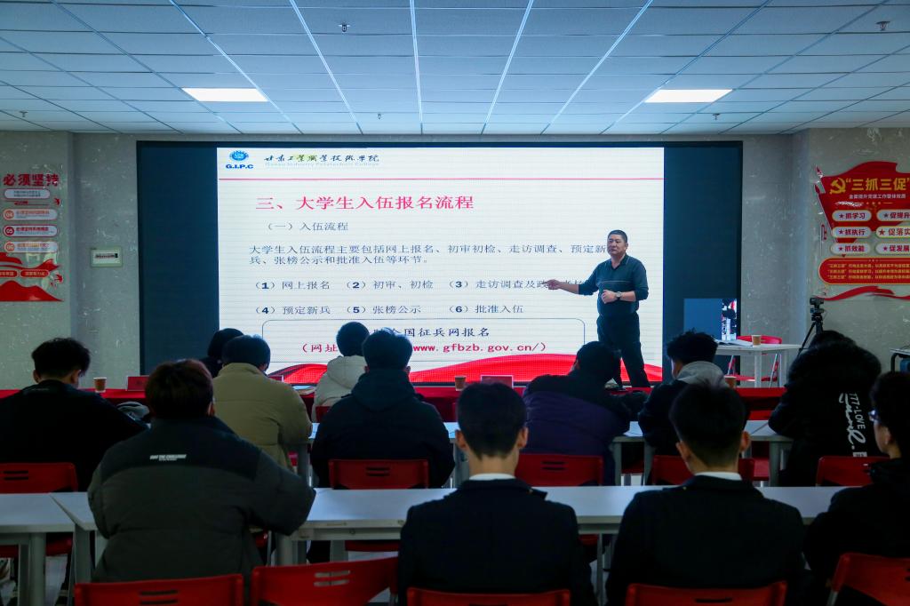 校武装部副部长赵卫立足自身经历,结合最新征兵政策,向线上线下的应、往毕业生阐释了投身军营的重要意义,并对大学毕业生入伍的优势及其未来发展方向进行细致解读。赵卫要求全体同学要勇于锤炼品格,敢于建功立业,积极响应号召,磨砺青春、献身国防事业。