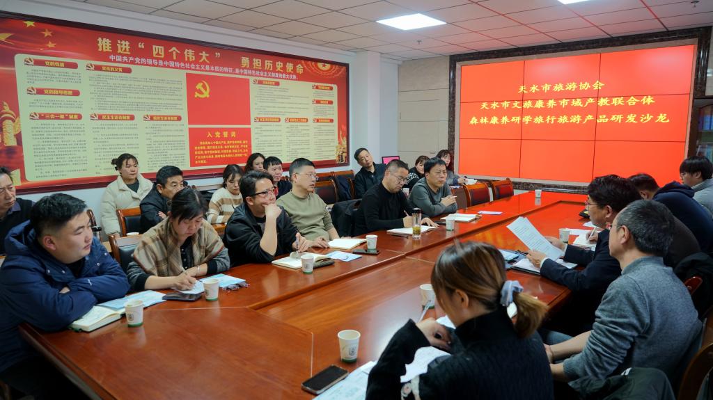 1月17日,天水市文旅康养市域产教联合体、天水市旅游协会在陇林饭店西楼会议室举办了以小陇山为主题的旅游产品研发沙龙活动,旨在挖掘小陇山独特旅游资源,打造特色鲜明的文旅康养研学旅行产品。天水市旅游协会会长王浩瑜,副秘书长周刚、马文军,天水融媒体中心文卓、麦积山文旅公司魏鸿,丝之路旅行社总经理李江、乐动丝路旅行社副总经理温彦博、天水旅游百事通旅行社经理闫媛,中级导游夏小东、马红波,小陇山综合开发有限公司总经理王润喜、副总经理王国荣、甘肃林业职业技术大学森林生态旅游专业教师于沁禾等旅行社、研学基地负责人汇集一堂,聚焦小陇山旅游产品研发献计献策。公司党总支副书记、副经理李玉林教授应邀参加并就整合小陇山林区景观资源,开展森林康养、研学、科普三个维度的议题进行了主题发言。