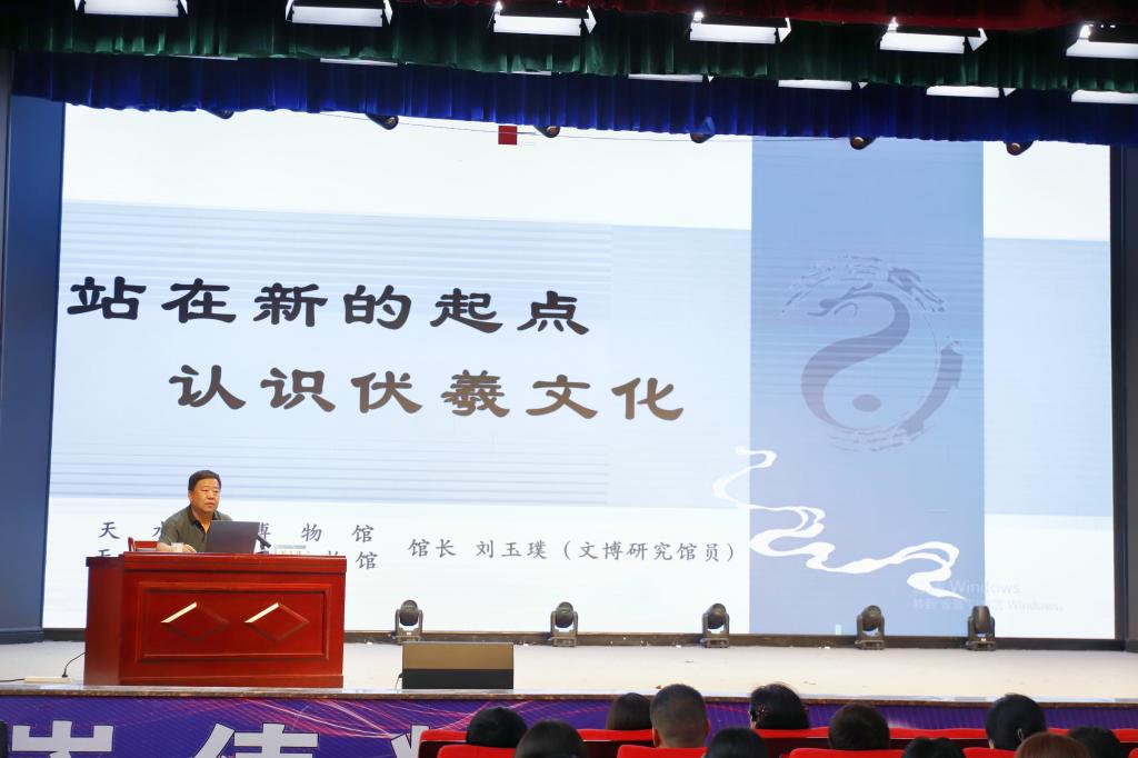 在甘肃省重点人才项目支持下,在2025(乙巳)年公祭中华人文始祖伏羲大典前夕,由天水市文旅康养市域产教联合体主办,bevictor伟德官网与《文旅康养人才产教融合实践中心》项目组承办的人才培训“大咖讲堂”,经过精心筹备于6月10日正式启动并成功举办首场人才培训会。活动特邀天水市博物馆党总支书记、馆长,文博研究馆员,第十批甘肃省优秀专家、甘肃省文物工作先进个人刘玉璞同志担任主讲嘉宾。公司党委副书记文云同志出席活动,bevictor伟德官网班子成员、全校师生代表现场聆听。