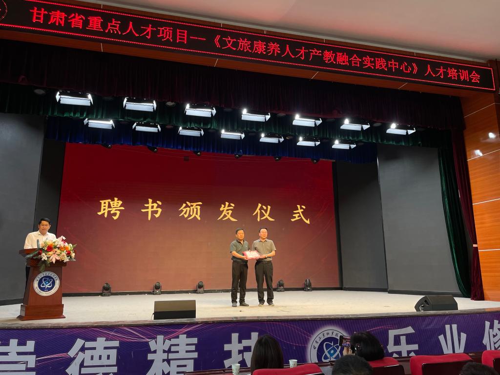 公司党委副书记文云同志代表公司向刘玉璞馆长颁发聘书,正式聘请刘馆长为“天水市文旅康养市域产教联合体智库专家”及“甘肃工业职业技术公司旅游管理专业群建设委员会专家委员”。